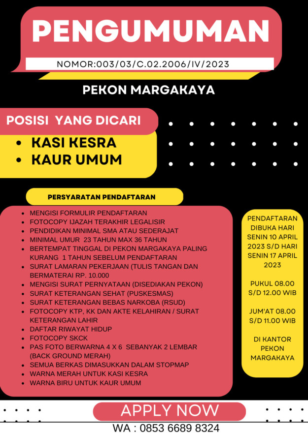 TUGAS POKOK PERANGKAT PEKON MARGAKAYA